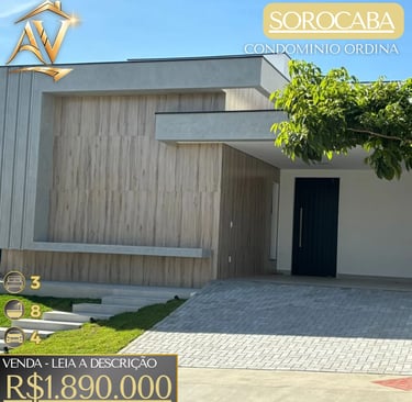 🏡Casa no Condomínio Ondina com 3 Suítes (Sorocaba)🏡